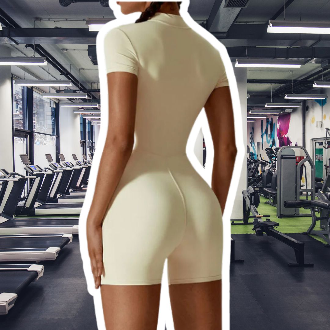Elevate your fitness sessions with "That Perfect Zip Jumpsuit." Designed to combine sun protection and style, this jumpsuit is your go-to choice for confident workouts.